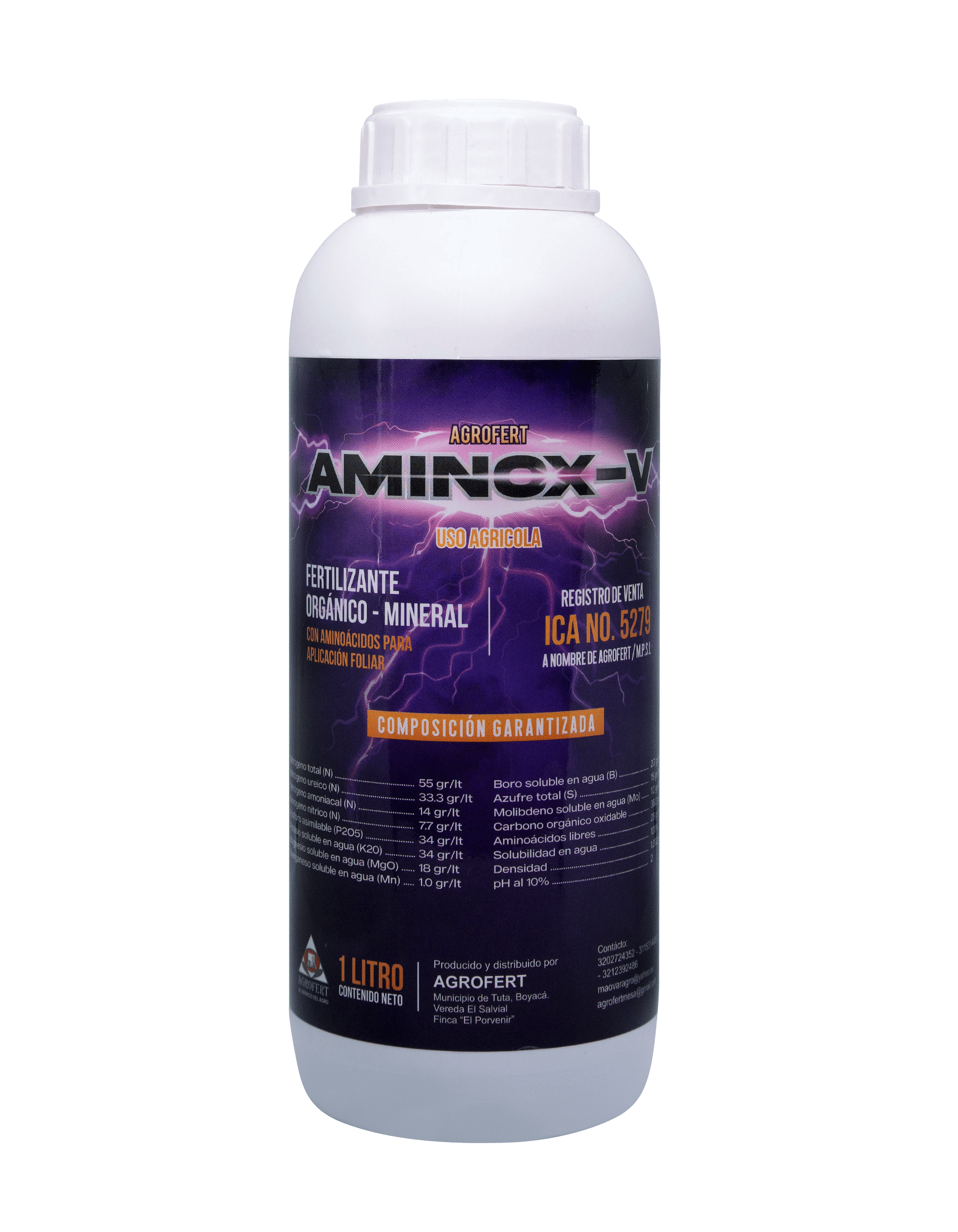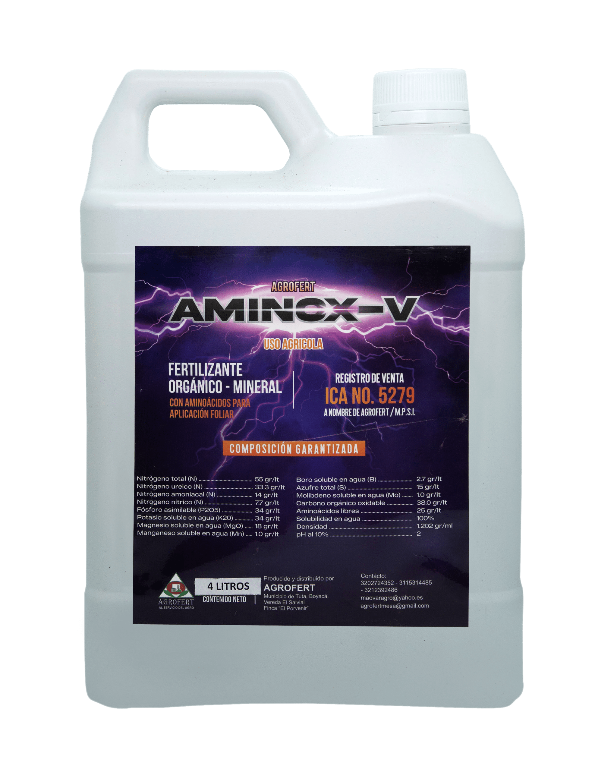 Aminoácidos con magnesio, NPK y elementos menores. Útil en plantas sometidas a estrés (heladas, sequías e intoxicaciones), es un bio-estimulante que facilita la recuperación de la planta. Activa y estimula la síntesis de metabolitos esenciales para etapas críticas como desarrollo y crecimiento, optimizando el desarrollo de estructuras y procesos de diferenciación, da fortaleza a los tallos, robustez a los cultivos y en general aumenta el vigor de las plantas y su resistencia a enfermedades. Sus componentes biorgánicos, tienen un marcado efecto anti estrés